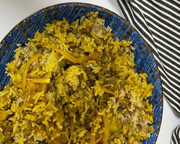 בתום הבישול של האורז והעדשים שופכים מעל את הבצל המטוגן, מערבבים קלות בזהירות וסוגרים את הסיר ל10 דקות. פותחים שוב, ערבוב קל ובתאבון.