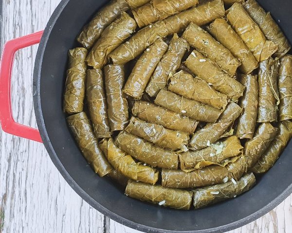 מבשלים על אש נמוכה כ4 שעות, עד שהעלי גפן הממולאים רכים ונימוחים בפה.